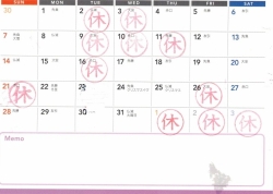 今月のお休みです。