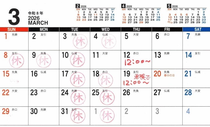 26日(金)は法要のため臨時休業です!