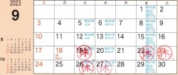 今月のお休みです。