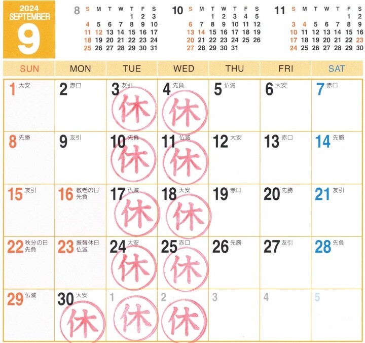 今月のお休みです。