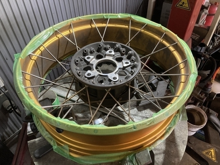 画像の様に養生は致しますが、まれにタイヤレバーの擦り傷が入る場合がございます。