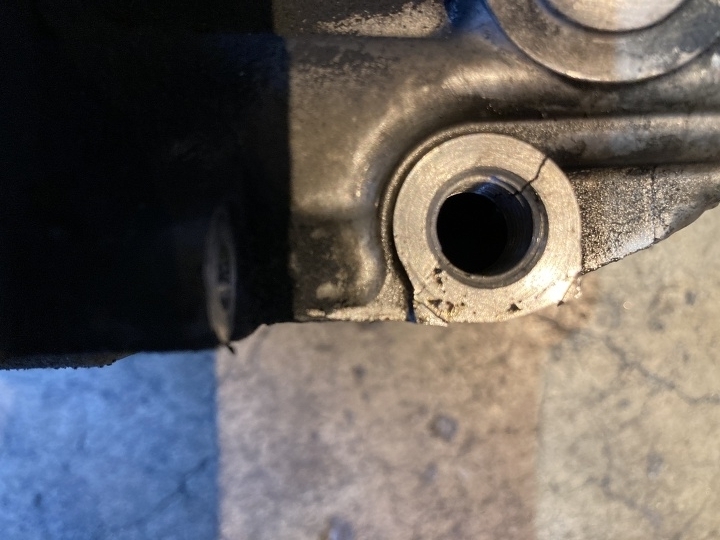 見事にクランクケース側ドレンホールにクラックが入っておりました。